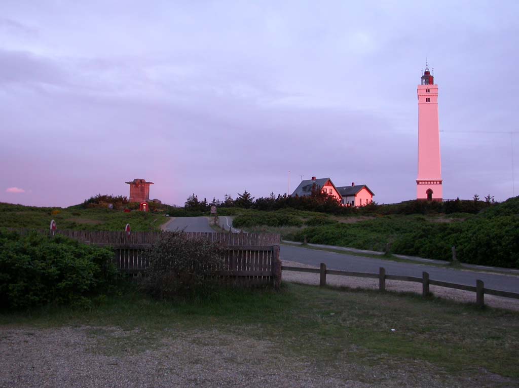 Blåvandshuk Fyr:Blåvandshuk Fyr er 39 meter højt og har en lampehøjde på 55 meter over havet. I klart vejr kan lyset fra den 1000 watt kraftige pære ses 42 km væk, hvilket er lige lidt længere end Horns Rev, der strækker sig 40 km ud mod vest. til top